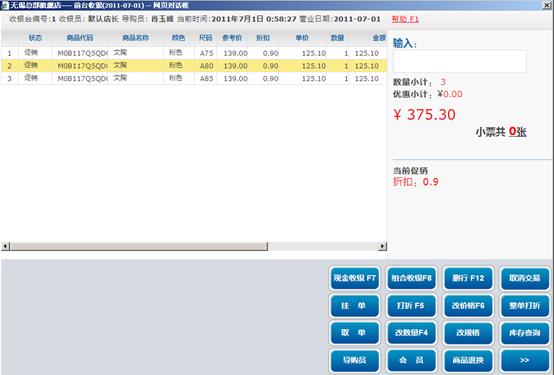 如果选错了店员号,可以点击收银界面右下角的导购员菜单中修改