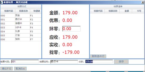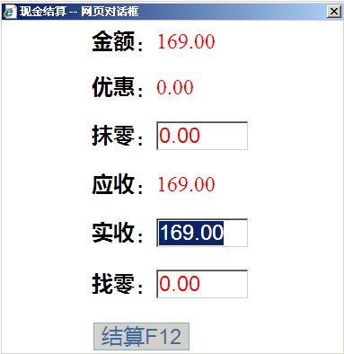 输入实收金额,点击结算按钮,收银完成,系统自动打印收银小票