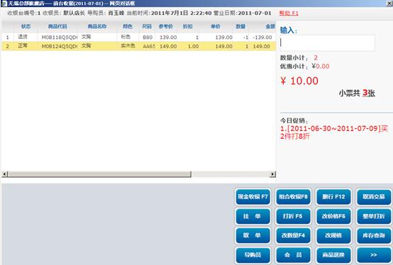 第三步:如果是退货直接进行收银工作即可(具体方法参考5.6)