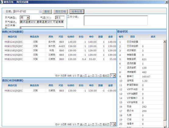 输入当日来客数后(红圈),点击提交日结按钮(绿圈)完成一天的收银工作
