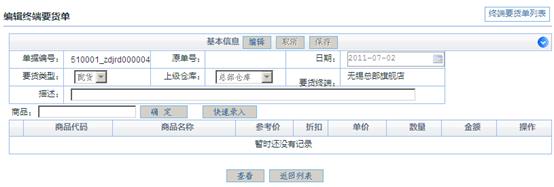 第三步:下达新的要货单,点击添加终端要货单按钮(黄圈)