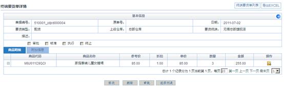第八步:点击审批后完成要货单即上传到总部仓库,要货单操作完成