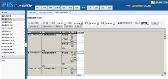 选择销售统计的时间范围以及商品范围,把颜色尺码前的勾打上(蓝圈)